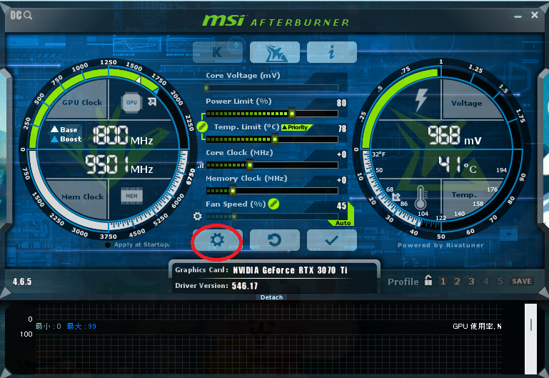 僕がビデオカードを制御するために使ったソフトはMSIアフターバーナーです。