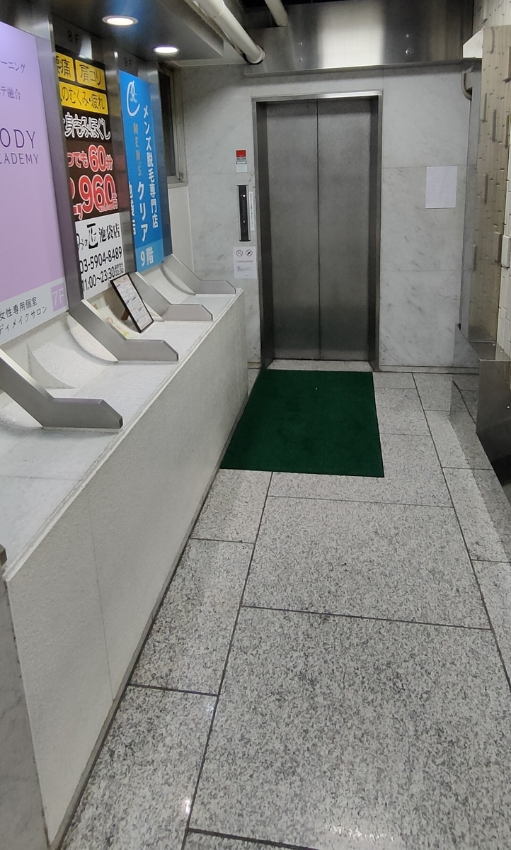 雑居ビルの6階にあります。そのビルを利用する人が多いため時間帯によってはエレベータに乗るために並ばないといけません。