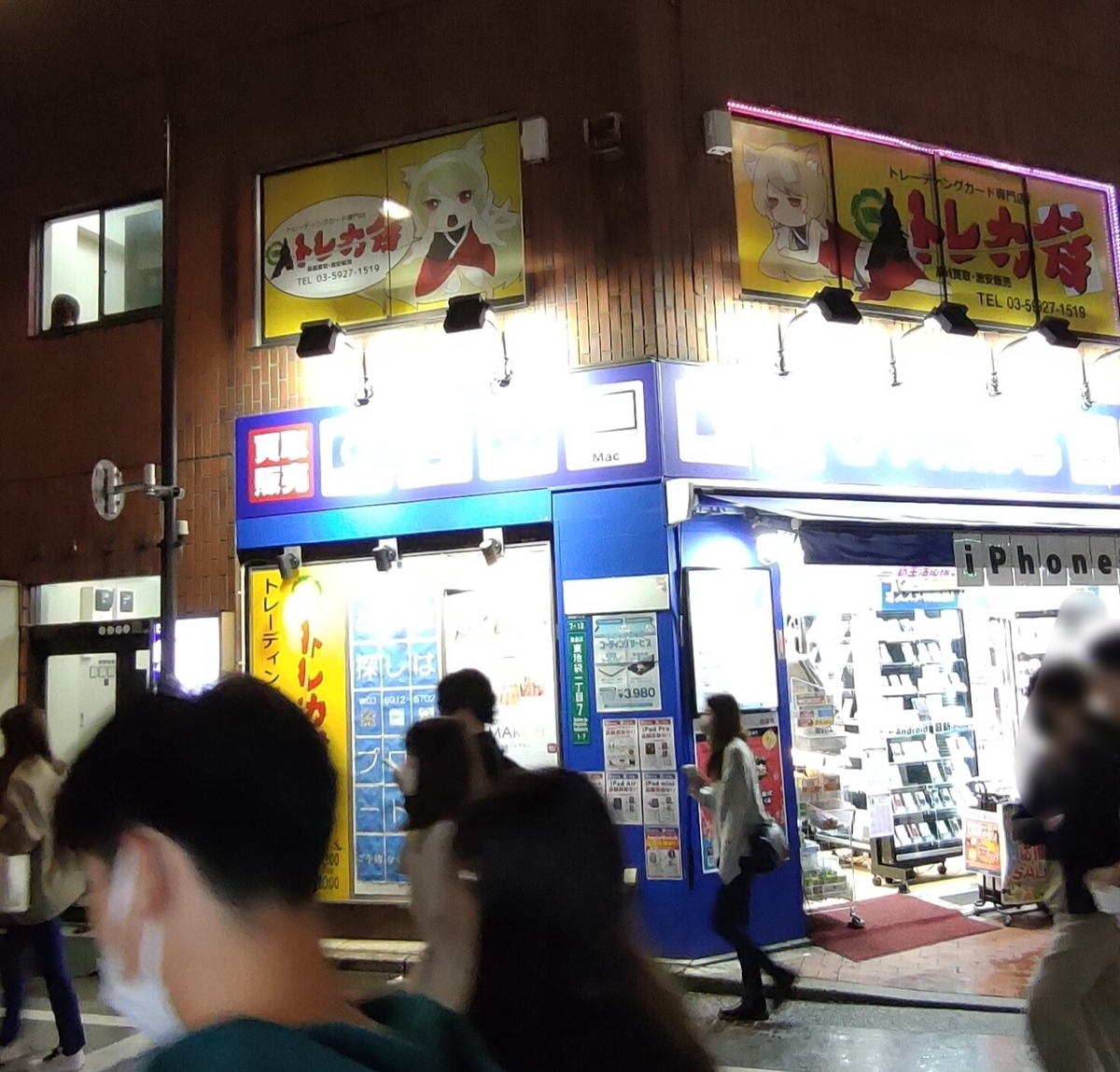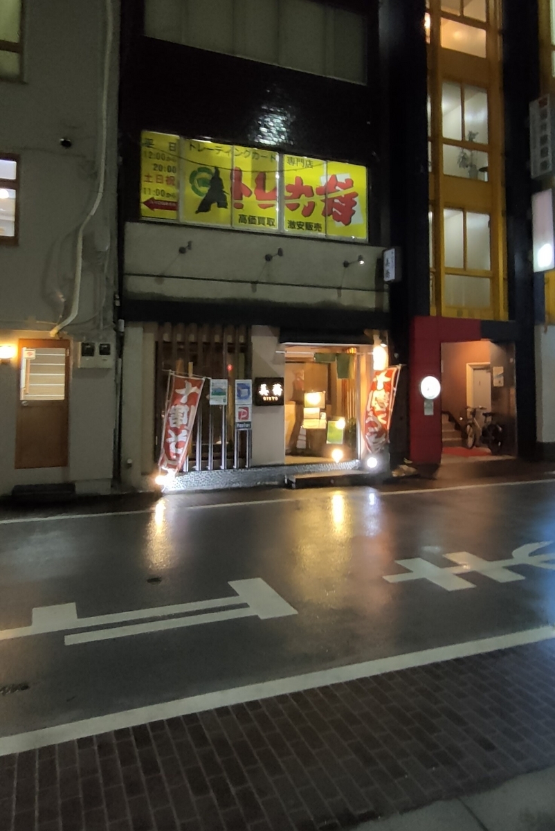 この黄色い「トレカ侍」と書いてある看板の左側にある入口から入ります。